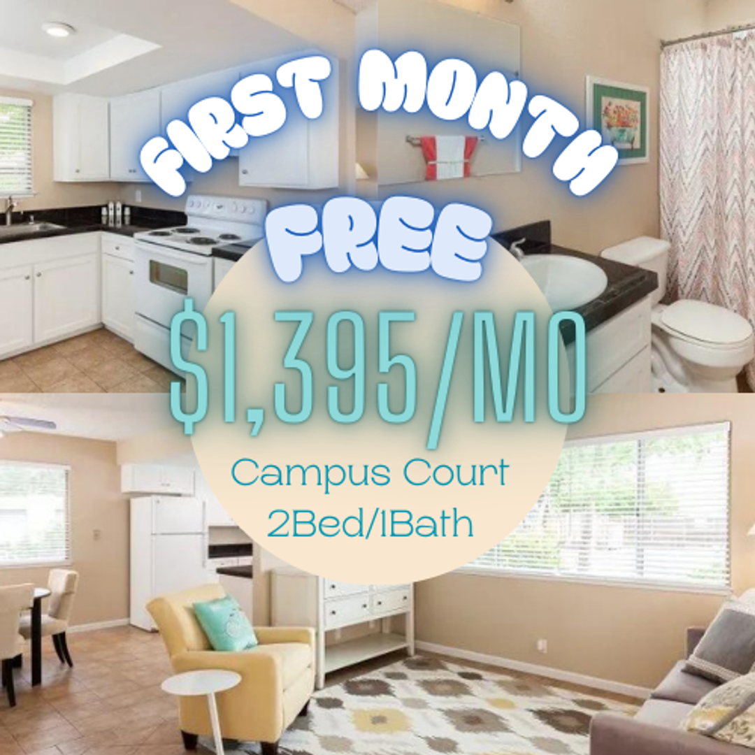 These charming two bedroom apartments are available for $1,395 a month. Campus Court is close to downtown, close to shopping and most importantly close to campus. Most units have been fully renovated with new granite counter tops, modern paint colors, tile flooring throughout, updated appliances, new lighting fixtures, window coverings and much more!